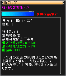 初期の性能はこちら 最大成長時の性能はこちら ※ 装備に取り付けて経験値を貯めることで3段階成長します。 |