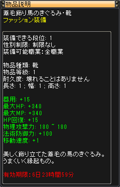 ファッション装備 装備できる段位:1段以上 性別制限:制限なし 装備可能職業:全職業 胴、手、脚、靴の4点セット 。 7日間期間限定ボーナス付! 全て装備の性能はこちら 胴装備の性能はこちら 手装備の性能はこちら 脚装備の性能はこちら 靴装備の性能はこちら ※ボーナス効果はセット開封後より7日間有効。 効果期間中は取引不可。 |