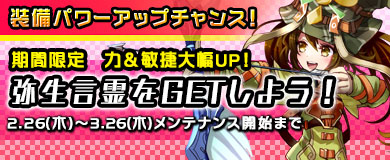 イベント期間中、中原大陸でドロップする装備品に一定確率で「弥生」の言霊が付与されます。
