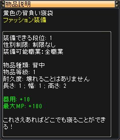 ![]() 黄色の背負い寝袋 NEW レア度: ★☆☆☆☆ |