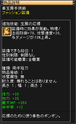 ![]() 青玉房手持飾 NEW レア度: ★★★★☆ |