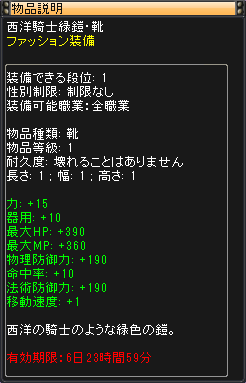 ファッション装備 装備できる段位:1段以上 性別制限:制限なし 装備可能職業:全職業 胴、手、脚、靴の4点セット 。 7日間期間限定ボーナス付! 全て装備の性能はこちら 胴装備の性能はこちら 手装備の性能はこちら 脚装備の性能はこちら 靴装備の性能はこちら ※ボーナス効果はセット開封後より7日間有効。 効果期間中は取引不可。 |
