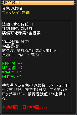 運命のコイン 15日間 移動速度+1 獲得経験値が10%UP! |